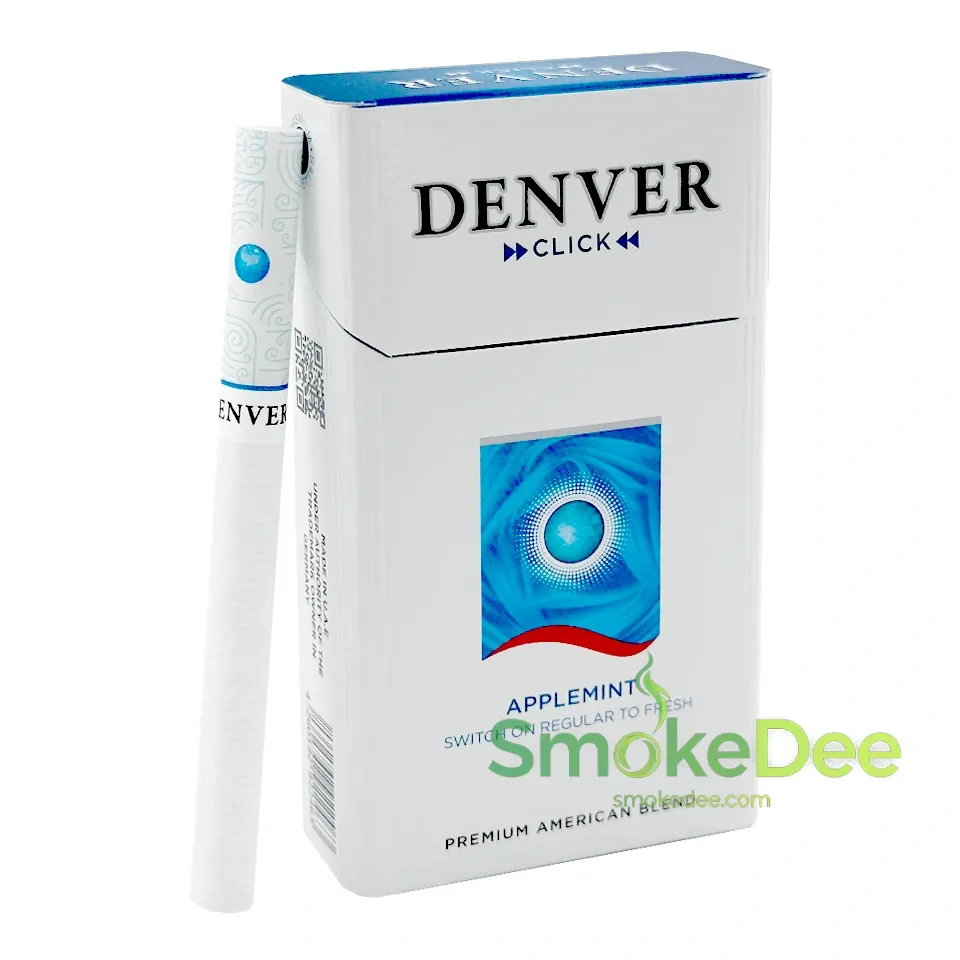 Denver Click Applemint เดนเวอร์ ฟ้า คือบุหรี่กลิ่นหอมที่นำเสนอประสบการณ์ใหม่ด้วยการผสมผสานระหว่างความหวานหอมของแอปเปิ้ลเขียวสดใสกับความเย็นสดชื่นของมินต์คุณภาพ เทคโนโลยี Click ระบบเม็ดบีบ 1 เม็ดช่วยให้คุณสามารถควบคุมความเข้มข้นของกลิ่นหอมได้ตามความต้องการ บรรจุภัณฑ์สีฟ้าสดใสสื่อถึงความเย็นสบายและความสดชื่นแบบธรรมชาติ ที่จะมอบประสบการณ์การสูบที่แตกต่างและน่าประทับใจ