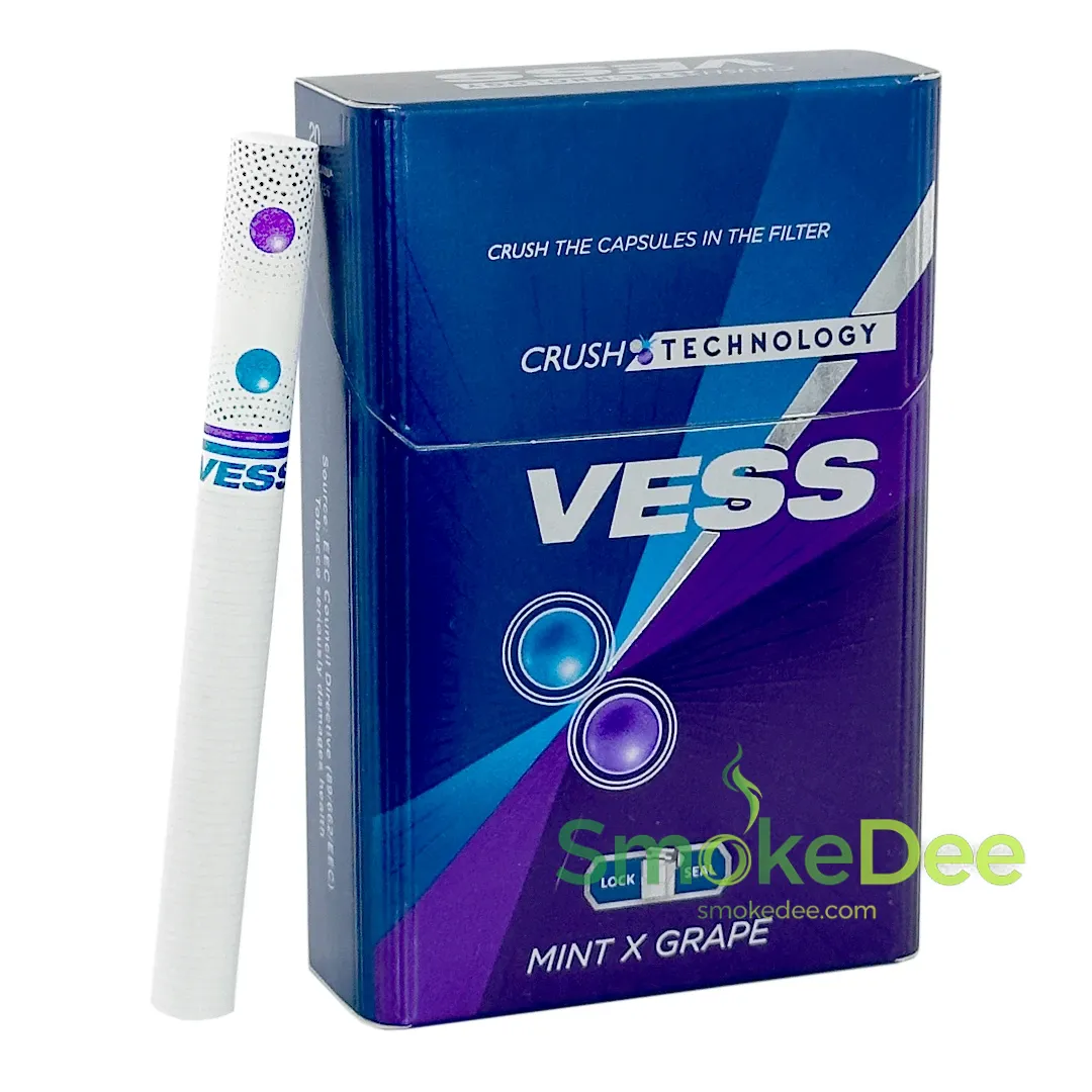 Vess องุ่น Crush Mint X Grape เป็นนวัตกรรมล่าสุดที่ผสมผสานรสชาติองุ่นหวานหอมเข้ากับความสดชื่นของมิ้น ในรูปแบบ 2 เม็ดบีบที่ให้ผู้สูบเลือกประสบการณ์การสูบได้ตามต้องการ ความเป็น “Crush” สื่อถึงความเข้มข้นและรสชาติที่ระเบิดออกมา